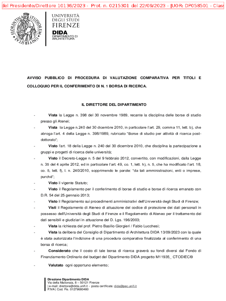 Ottieni il gratuito Oggetto: Bando borsa di studio per attivit di ricerca dal titolo