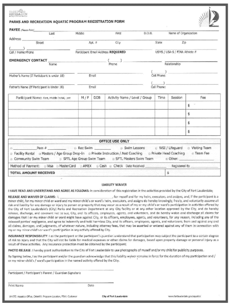 Swim Fort LauderdaleMembership Agreement and Payment ObligationCURRENT YEAR 20_ to 201) MONTHLY WORKOUT FEES: Billing for monthly workout fees is completed at the end of each month (seaways to Pay