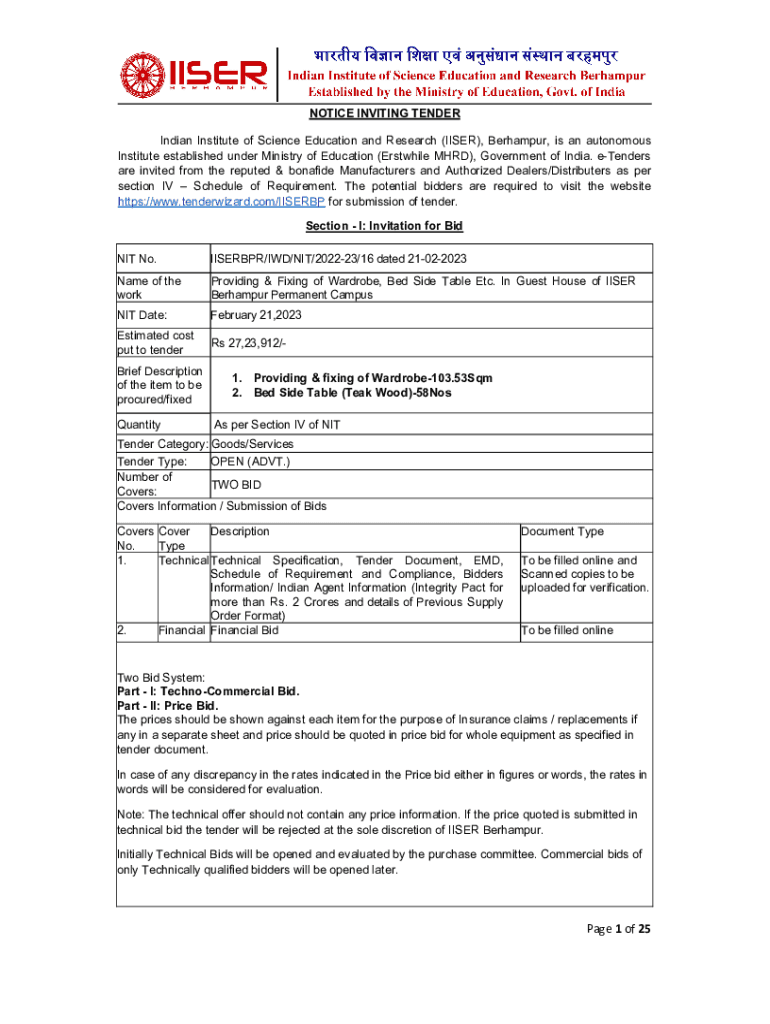 Fill out your notice inviting e-tender indian online with pdfFiller!