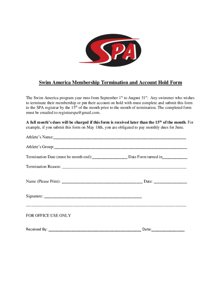 Get the free Swim America Membership Termination and Account Hold ...
