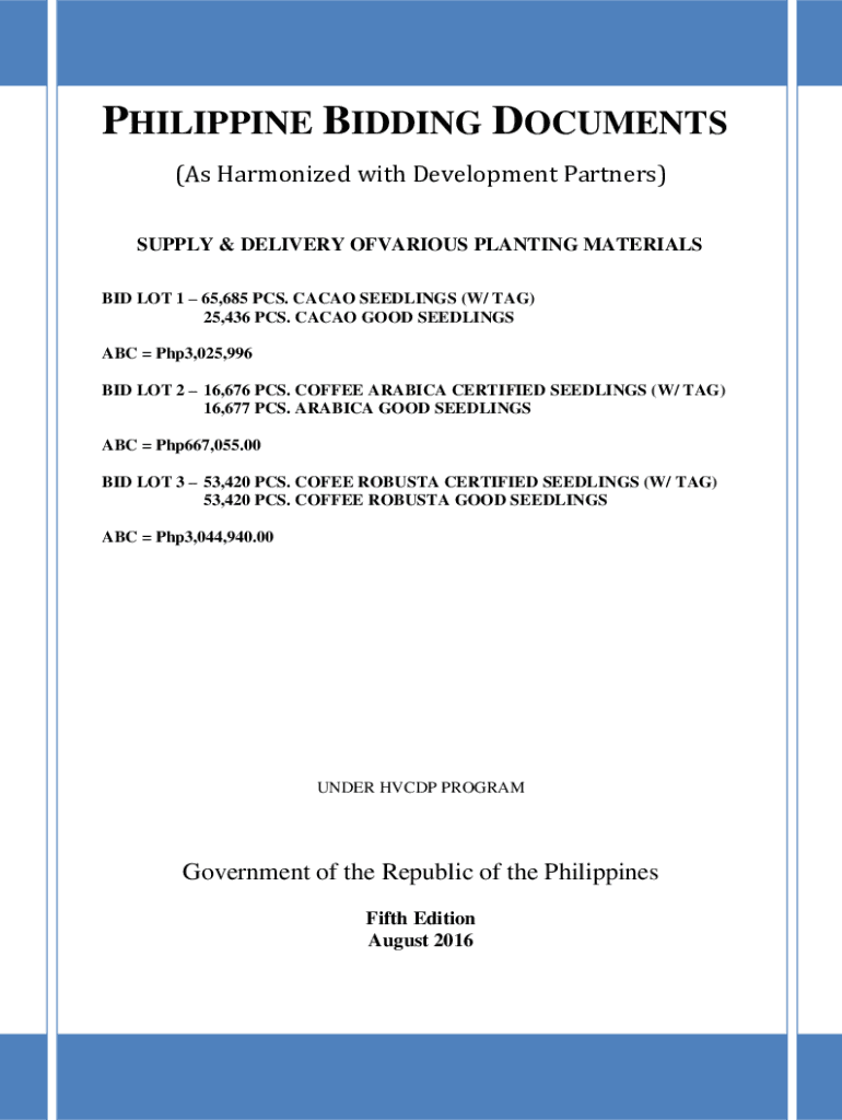 PHILIPPINE BIDDING DOCUMENTS (As Harmonized with Development Partners) SUPPLY & DELIVERY VARIOUS PLANTING MATERIALS BID LOT 1 65,685 PCS. CACAO SEEDLINGS (W/ TAG) 25,436 PCS. CACAO GOOD SEEDLINGS