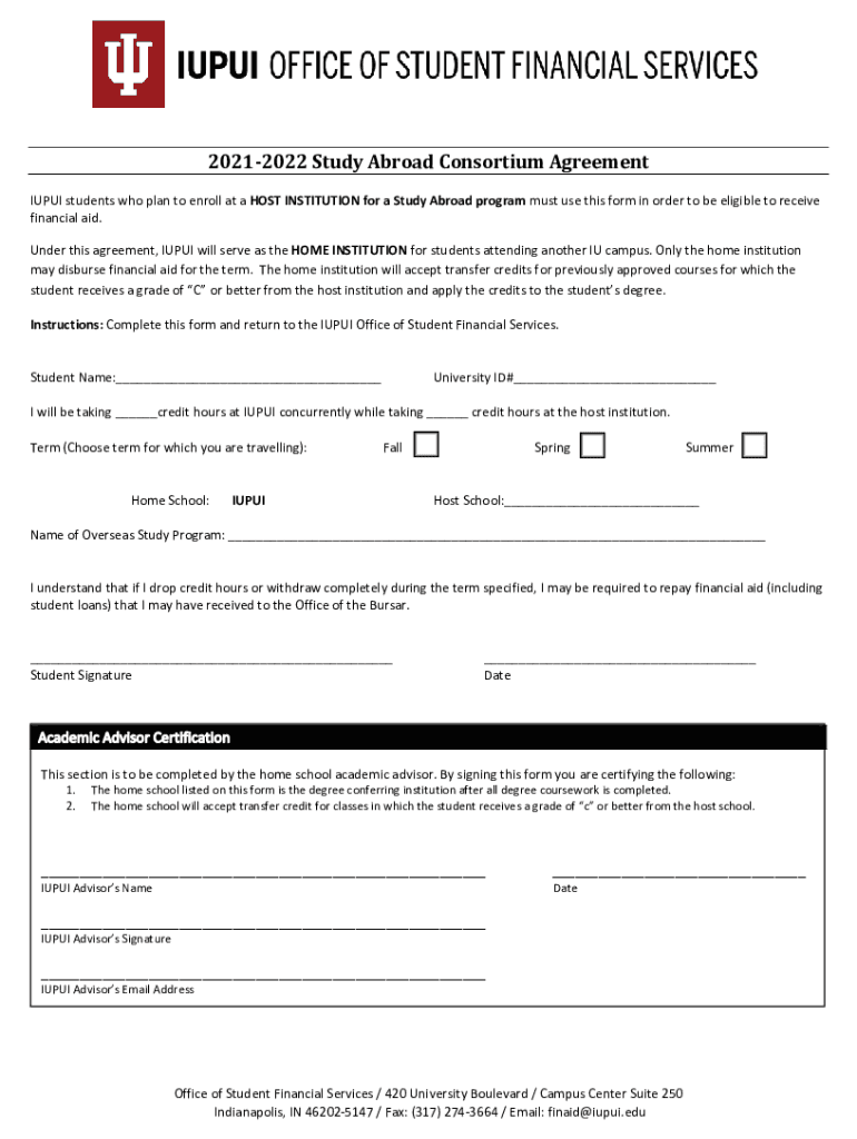 20212022 Study Abroad Consortium Agreement INPUT students who plan to enroll at a HOST INSTITUTION for a Study Abroad program must use this form in order to be eligible to receive financial aid. Under