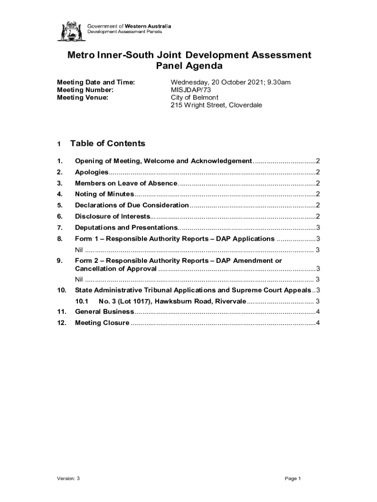 Get the free 20211020 - Agenda - No 73 - City of Belmont. Development Assessment Panel template