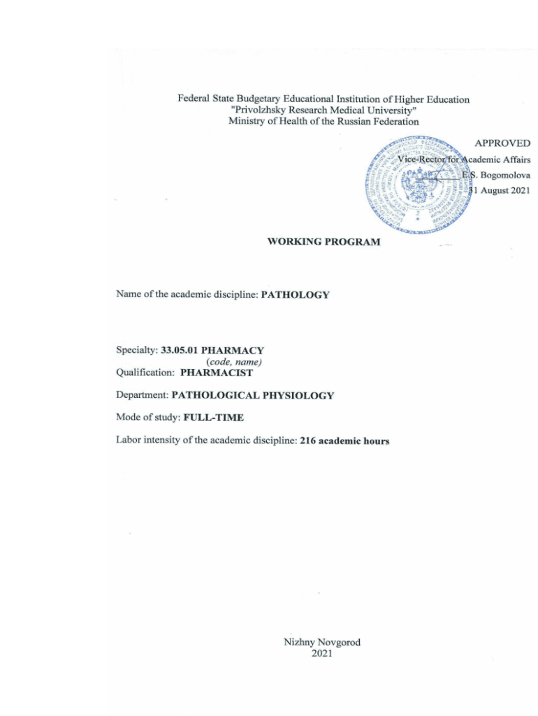 1. The purpose and objectives of mastering the academic discipline Pathology (hereinafter the discipline): 1.1. The purpose of mastering the discipline: participation in forming the relevant competencies