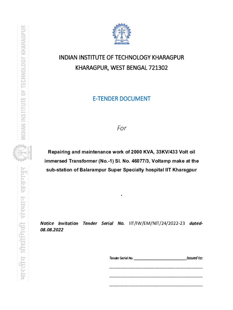 Get the free Notice Invitation Tender Serial No. IIT/IW/EM/NIT/21/2022- ...