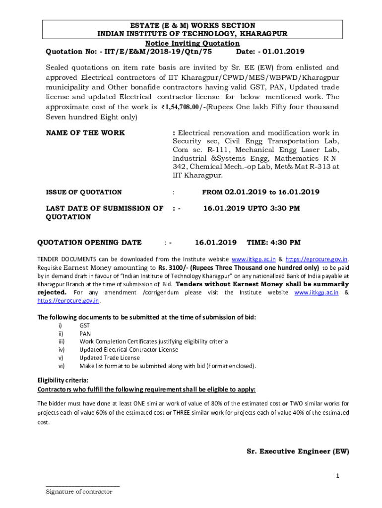 Get the free Quotation No: - IIT/E/E&M/2018-19/Qtn/75
