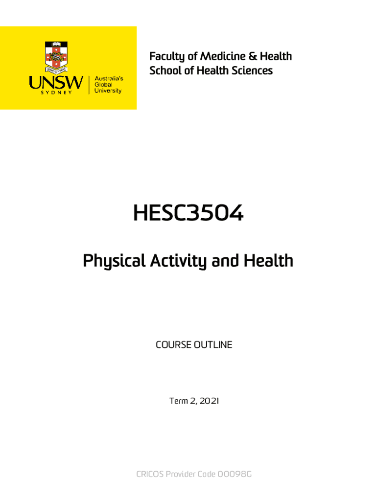 Faculty of Medicine & Health School of Health SciencesHESC3504 Physical Activity and Healthcare OUTLINETerm 2, 2021CRICOS Provider Code 00098GTable of ContentsStaff Contact Details .............................................................................................................................3