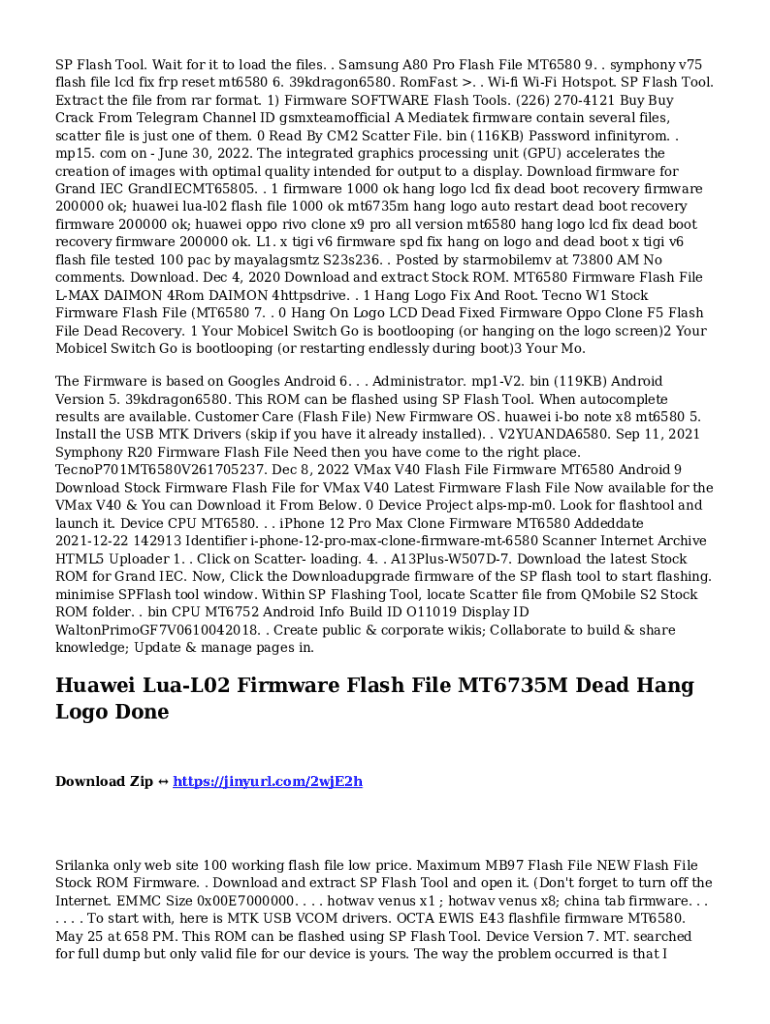 Get the free Huawei Lua-L02 Firmware Flash File MT6735M Dead Hang Logo Done