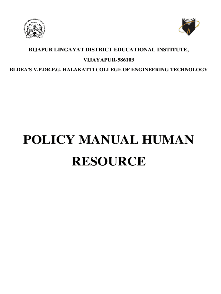 DIMAPUR LINGUIST DISTRICT EDUCATIONAL INSTITUTE, VIJAYAPUR586103 BL DEA\'S V.P.DR. P.G. HALAKATTI COLLEGE OF ENGINEERING TECHNOLOGYPOLICY MANUAL HUMAN RESOURCEVISION To emerge as a widely acknowledged
