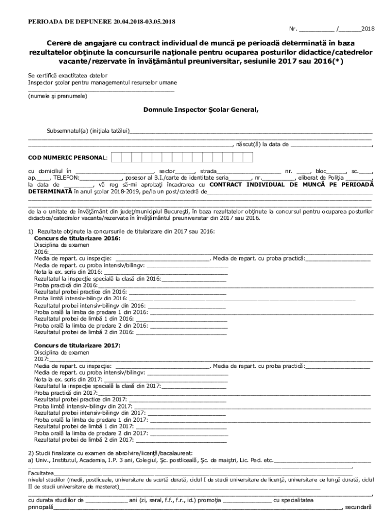 PERIOD DE DEANERY 20.04.201803.05.2018 NR. ___ /___2018Cerere de angular cu contract individual de UNC PE period determinant n Gaza rezultatelor minute la concursurile national entry ocular posterior
