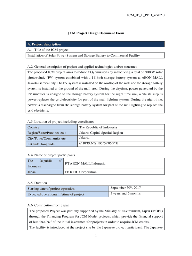 JCM_ID_F_PDD_ver02.0JCM Project Design Document Form A. Project description A.1. Title of the CM project Installation of Solar Power System and Storage Battery to Commercial Facility A.2. General
