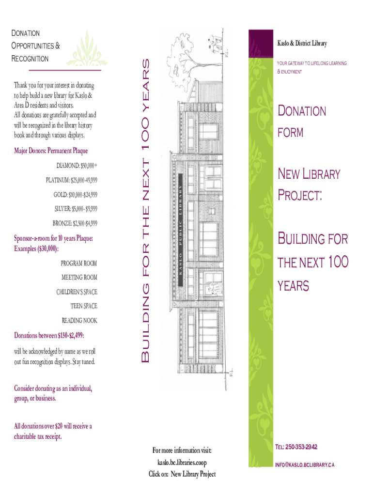 Donation Opportunities & Recognition Thank you for your interest in donating to help build a new library for Kahlo & Area D residents and visitors. All donations are gratefully accepted and will be