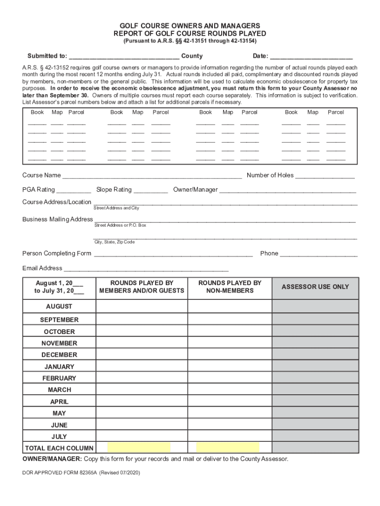 Pronuclear Footgolf COURSE OWNERS AND MANAGERS REPORT OF GOLF COURSE ROUNDS PLAYED (Pursuant to A.R.S. 4213151 through 4213154)Submitted to: ___ Countywide: ___A. R.S. 4213152 requires golf course