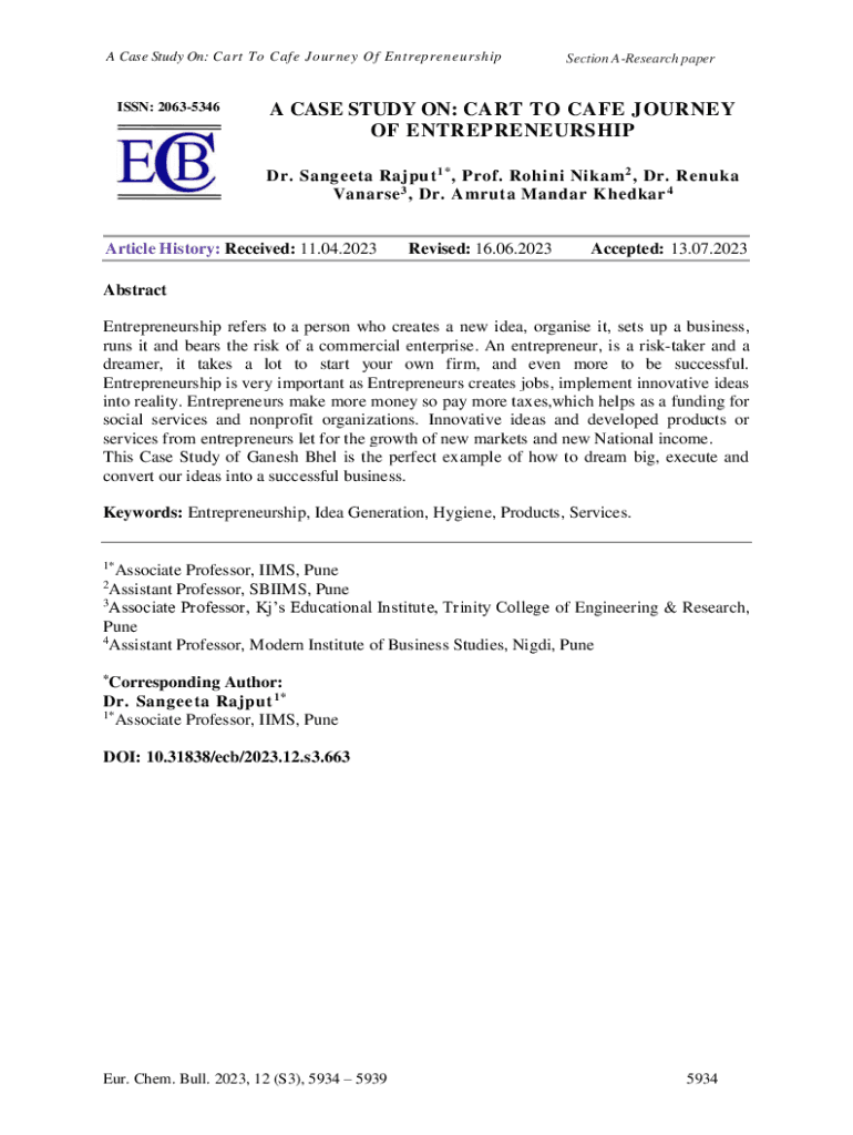 A Case Study On: Cart To Café Journey Of Entrepreneurship ISSN: 20635346Section Research paper CASE STUDY ON: CART TO Café JOURNEY OF ENTREPRENEURSHIP Dr. Santa Rapt 1×, Prof. Robin Nina 2, Dr.