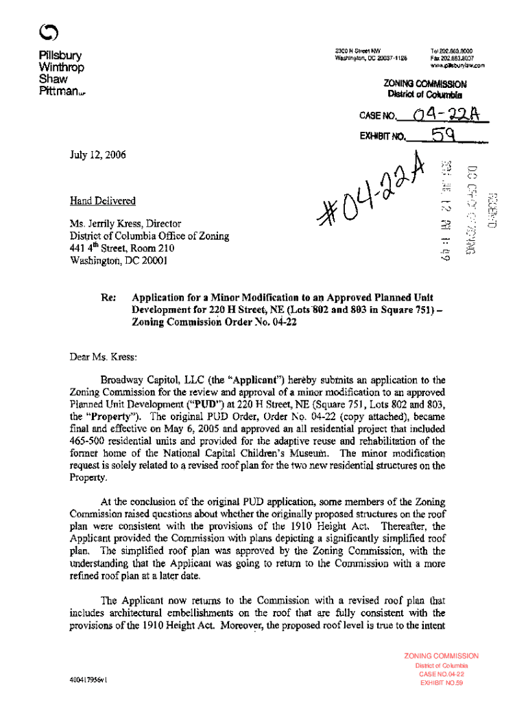 2300 N Street NW Washington, DC 200371128Pillsbury Winthrop Shaw PittmanTel202.663.8000 Fax 202.663.8007 www.pillsburylaw.comZONING COMMISSION District of ColumbiaUPCASE NO.(? L76&5qEXHIBIT NO. July