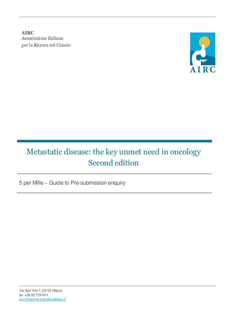 AIR Association Italian per la Ricer ca sub Micrometastatic disease: the key unmet need in oncology Second edition 5 per Mile Guide to Presubmission enquiryVia San Vito 7, 20123 Milano tel. +39 02