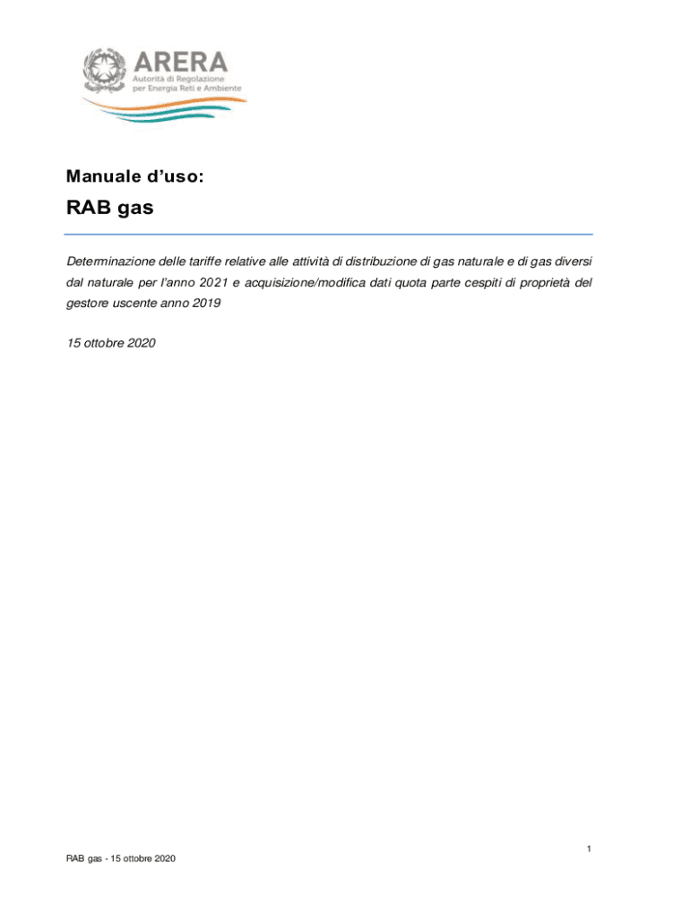 Manual duo:RAB gas Determination Dell tariff relative all activity DI distribution DI gas natural e DI gas diverse DAL natural per Lanny 2021 e acquisition/modified data quota part despite DI propriety