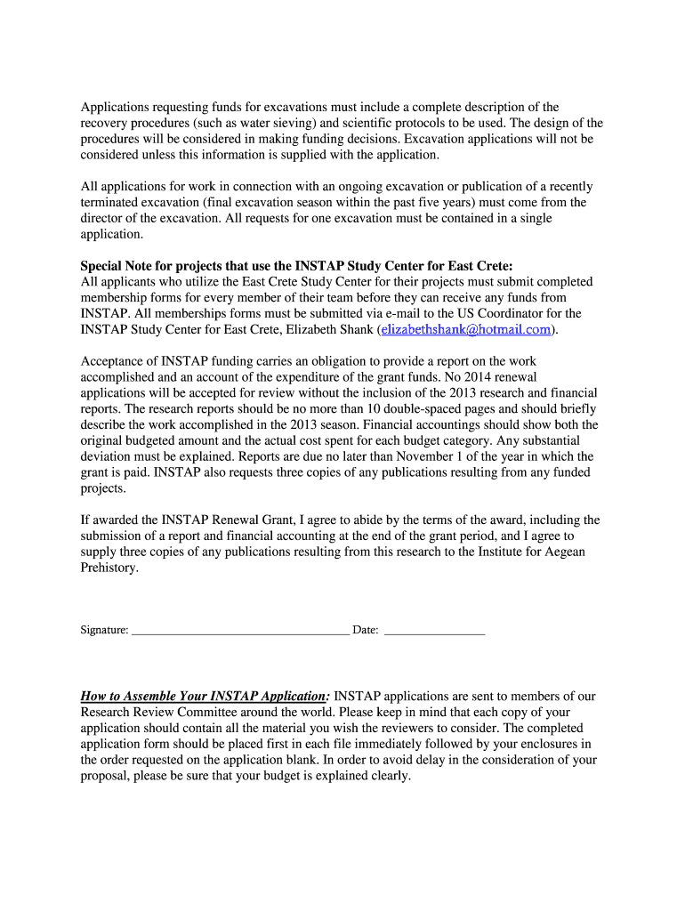 Get the free 2014 Renewal Application - Institute for Aegean Prehistory