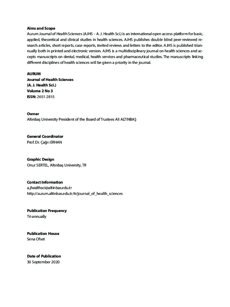 Aims and Scope Durum Journal of Health Sciences (AHS A. J. Health Sci.) is an international open access platform for basic, applied, theoretical and clinical studies in health sciences. AHS publishes