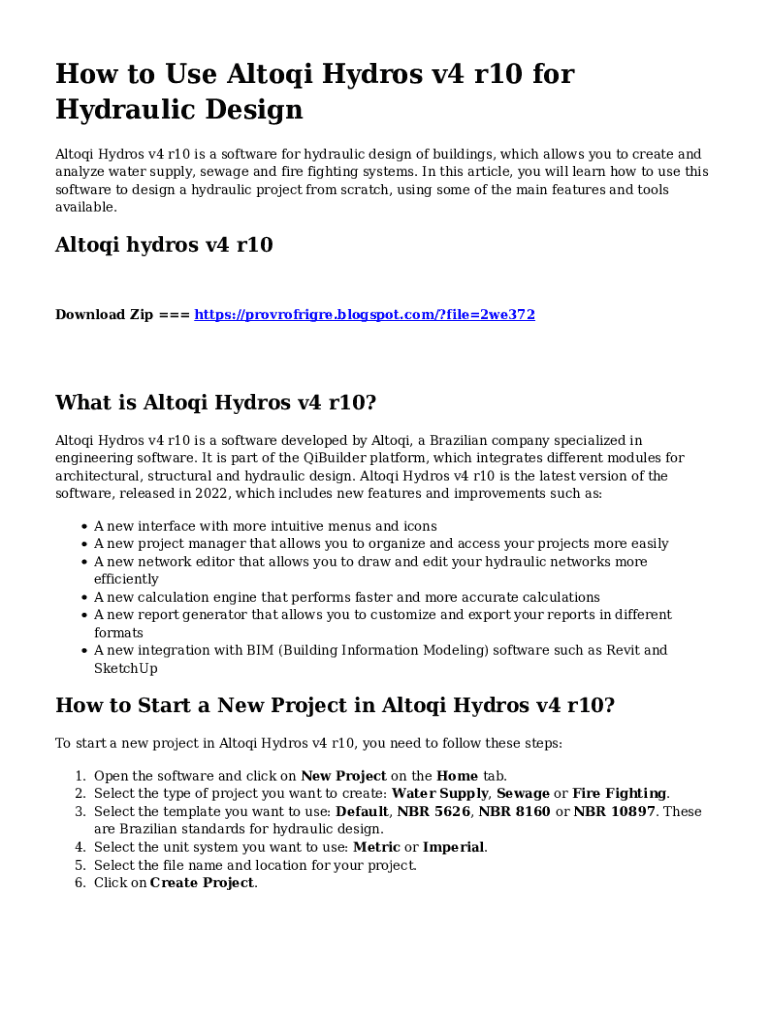 How to Use Alto Hydro v4 r10 for Hydraulic Design Alto Hydro v4 r10 is a software for hydraulic design of buildings, which allows you to create and analyze water supply, sewage and fire fighting systems.