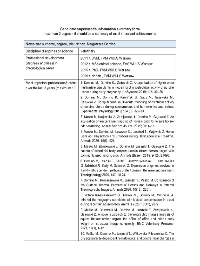 Candidate supervisors information summary form