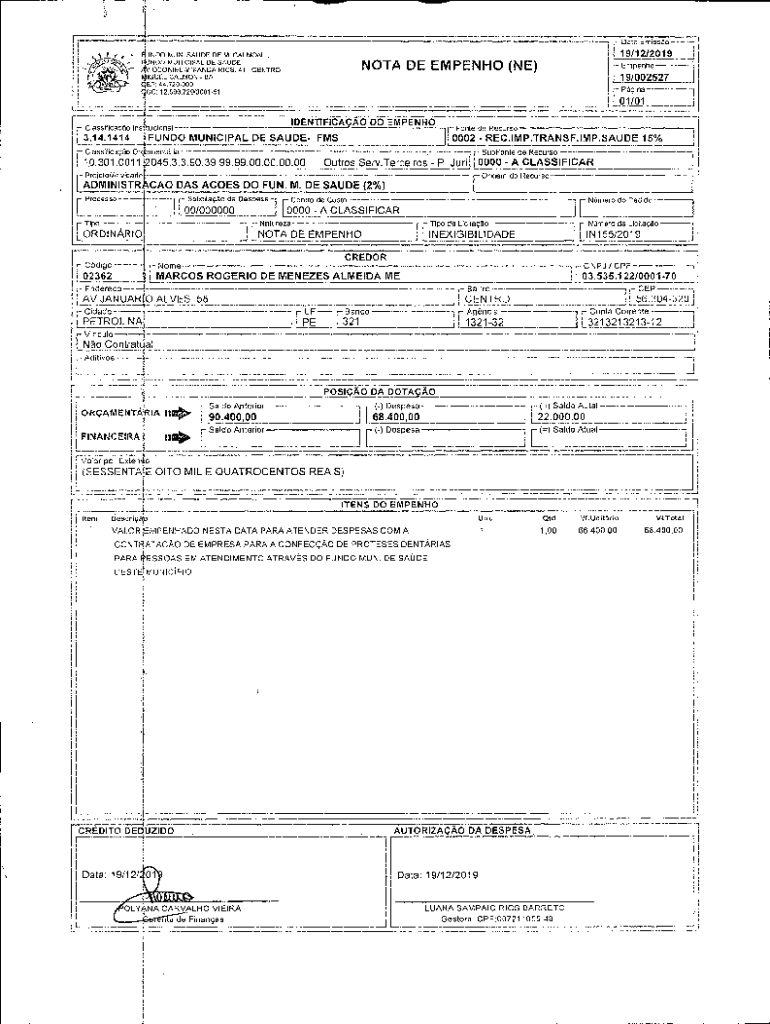 Obtenha o gratuito NOTA DE EMPENHO (NE)