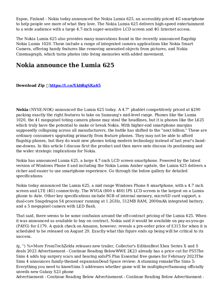 Get the free Nokia unveils the Lumia 625, a low-cost phone with a big 4.7 ...
