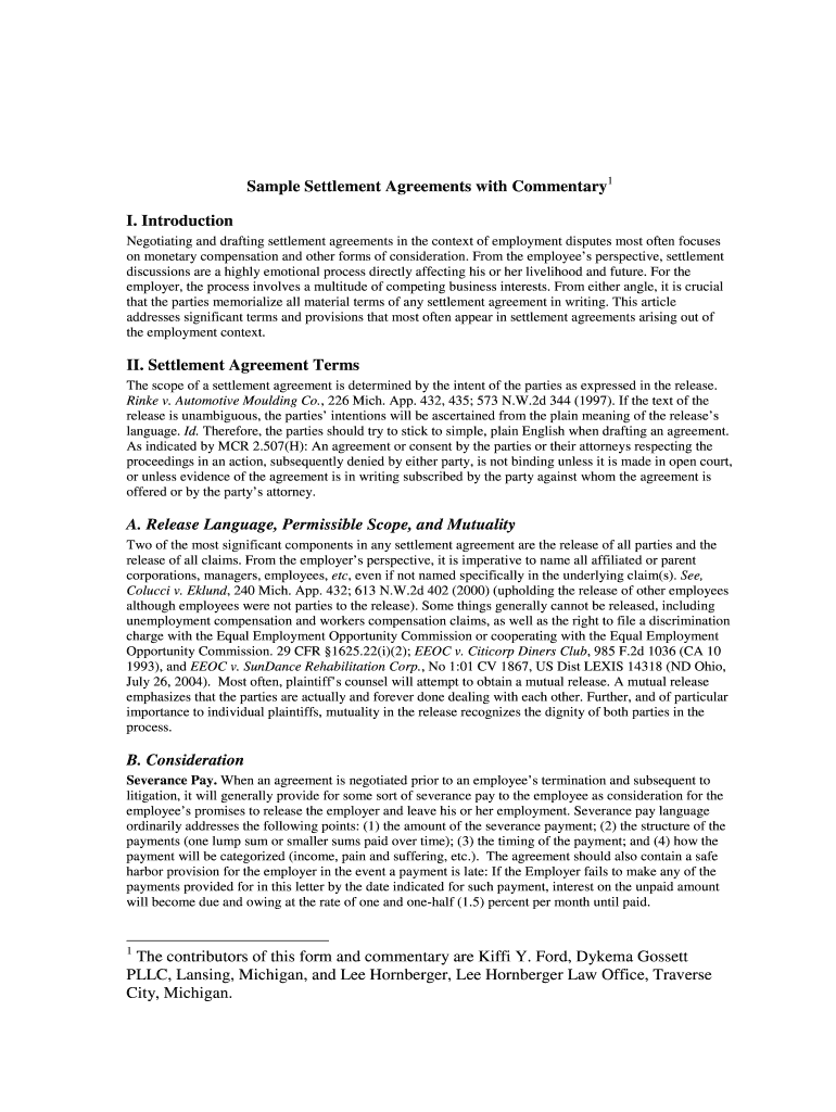 Get the free Sample Settlement Agreements with Commentary