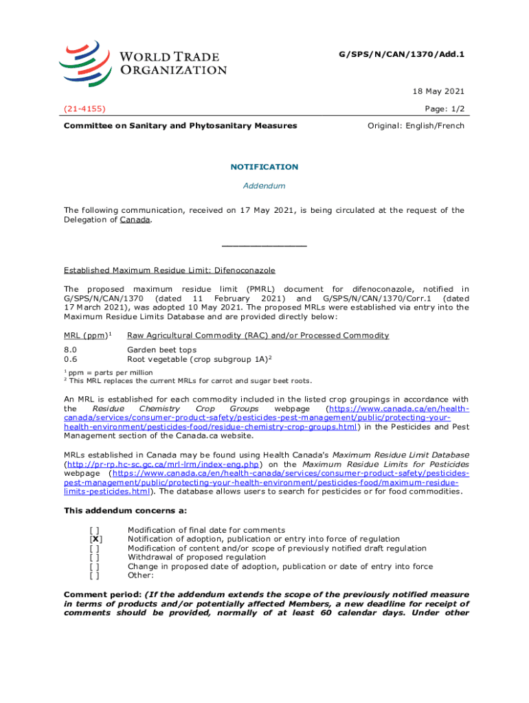 Get the free G/SPS/N/CAN/1370/Add.1 18 May 2021 (21-4155) Page