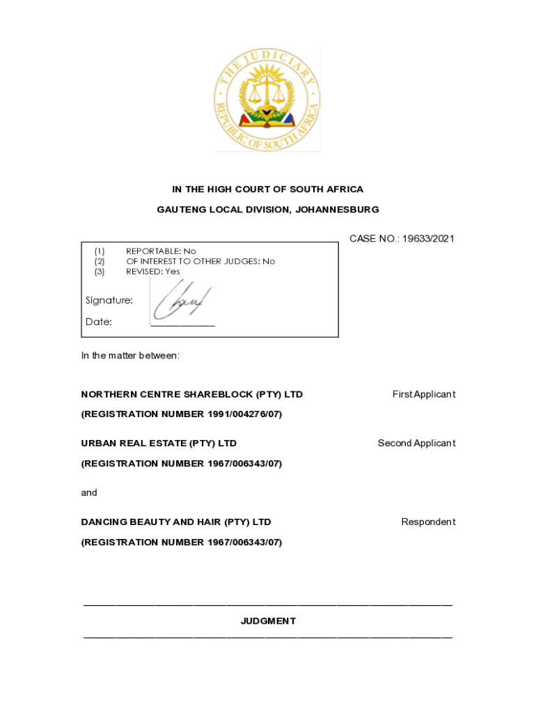IN THE HIGH COURT OF SOUTH AFRICA GLUTEN LOCAL DIVISION, JOHANNESBURG CASE NO.: 19633/2021 (1) (2) (3)REPORTABLE: No OF INTEREST TO OTHER JUDGES: Now REVISED: E-signature:___Date:___In the matter
