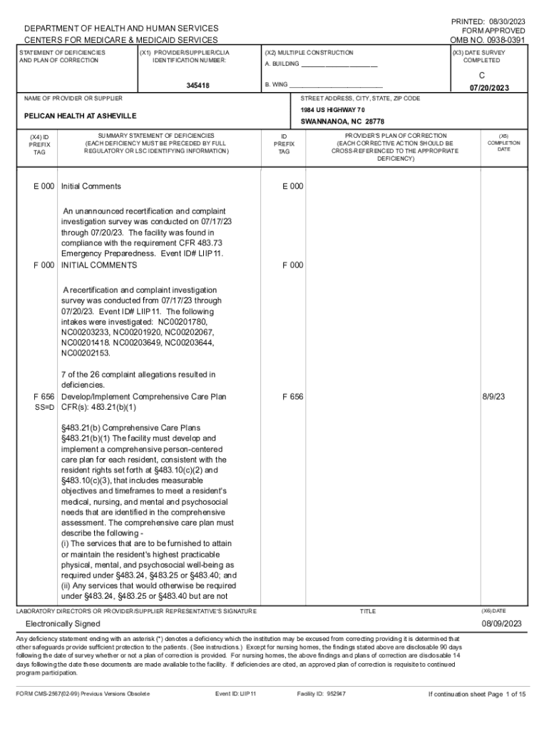 PRINTED: 08/30/2023 FORM APPROVEDDEPARTMENT OF HEALTH AND HUMAN SERVICES CENTERS FOR MEDICARE & MEDICAID SERVICES STATEMENT OF DEFICIENCIES AND PLAN OF CORRECTION(X1) PROVIDER/SUPPLIER/CIA IDENTIFICATION