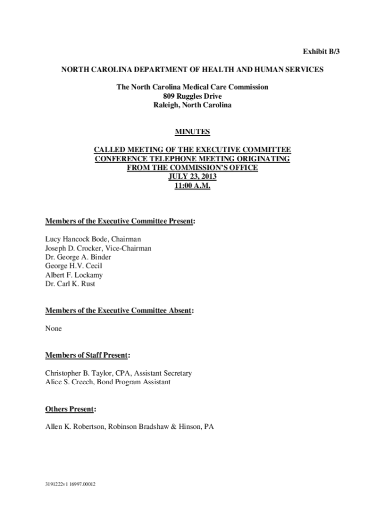CALLED MEETING OF THE EXECUTIVE COMMITTEE