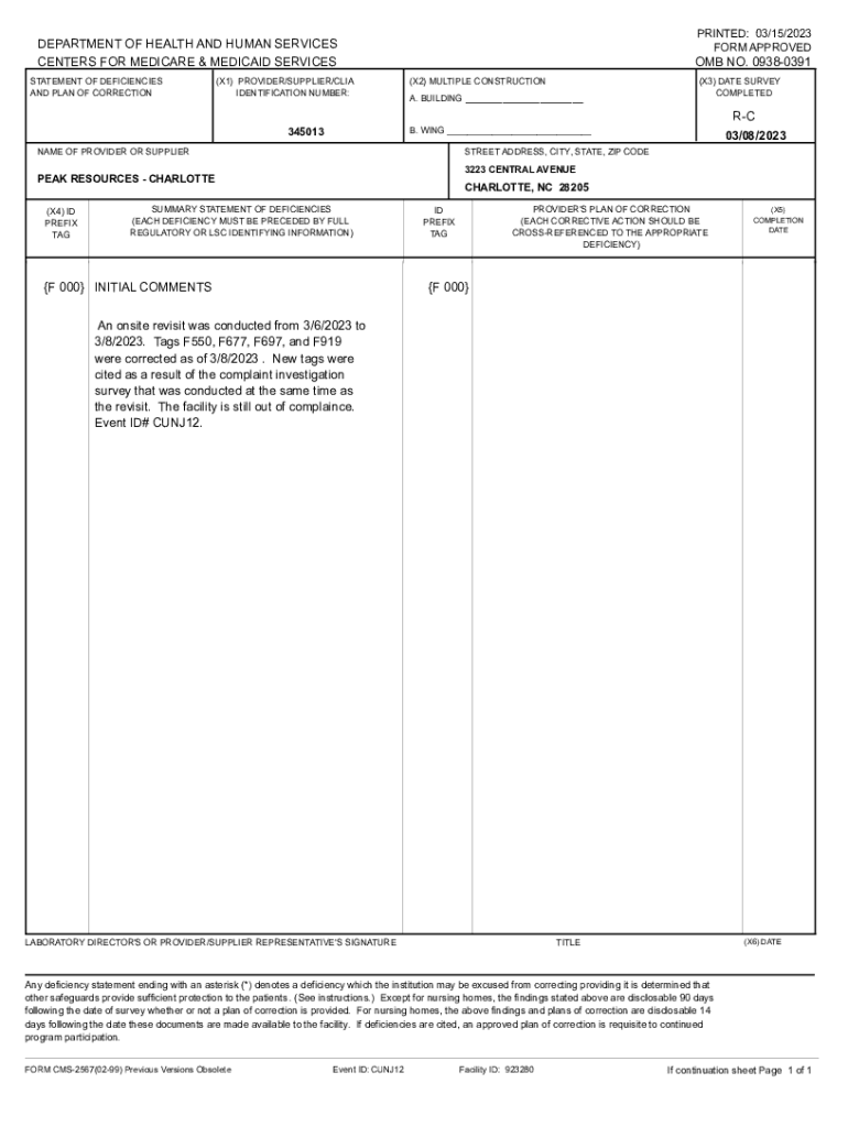 PRINTED: 03/15/2023 FORM APPROVEDDEPARTMENT OF HEALTH AND HUMAN SERVICES CENTERS FOR MEDICARE & MEDICAID SERVICES STATEMENT OF DEFICIENCIES AND PLAN OF CORRECTION(X1) PROVIDER/SUPPLIER/CIA IDENTIFICATION