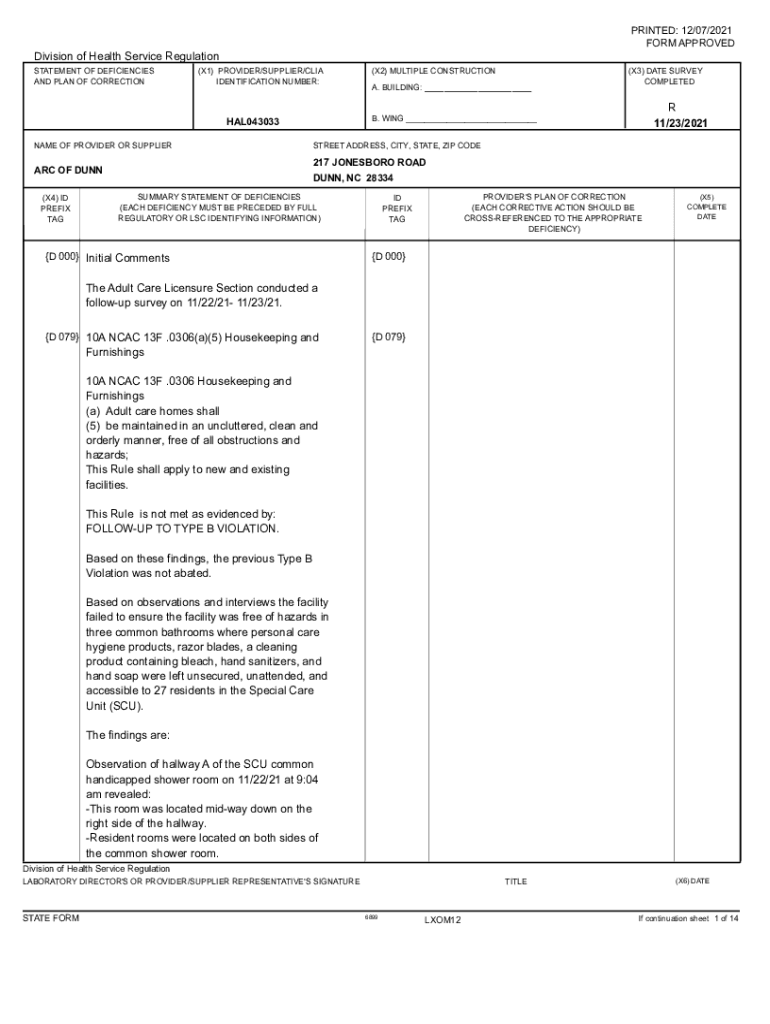 PRINTED: 12/07/2021 FORM APPROVEDDivision of Health Service Regulation STATEMENT OF DEFICIENCIES AND PLAN OF CORRECTION(X1) PROVIDER/SUPPLIER/CIA IDENTIFICATION NUMBER:(X3) DATE SURVEY COMPLETED 11/23/2021STREET