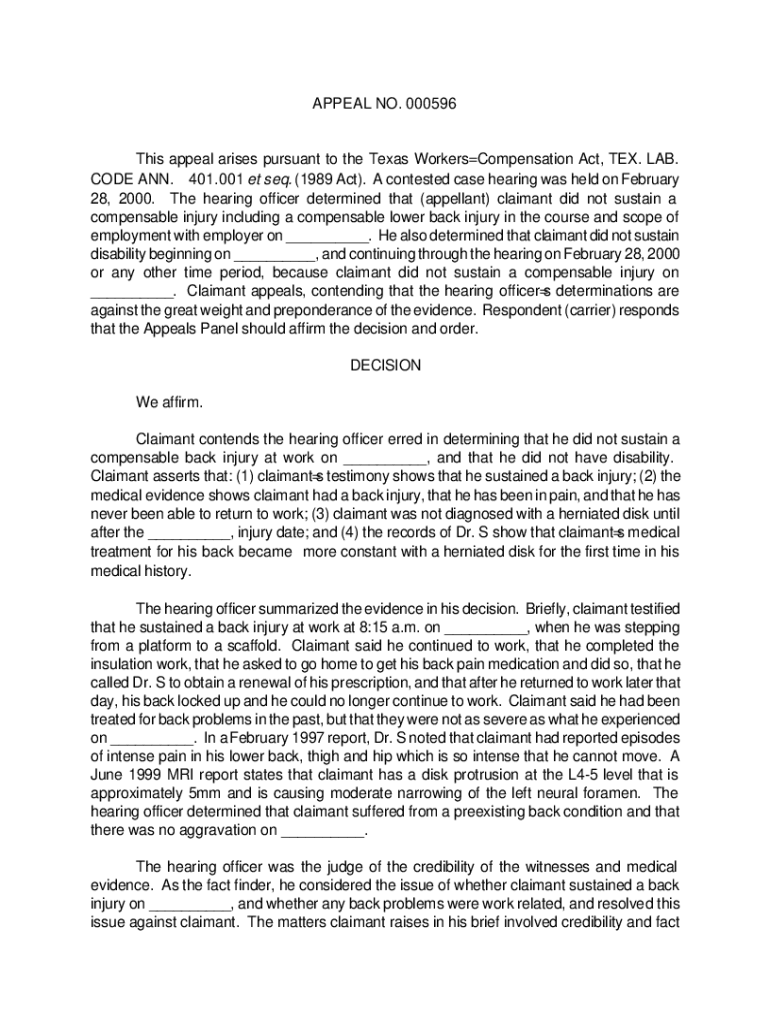 Get the free APPEAL NO. 000596 This appeal arises pursuant to the Texas ...