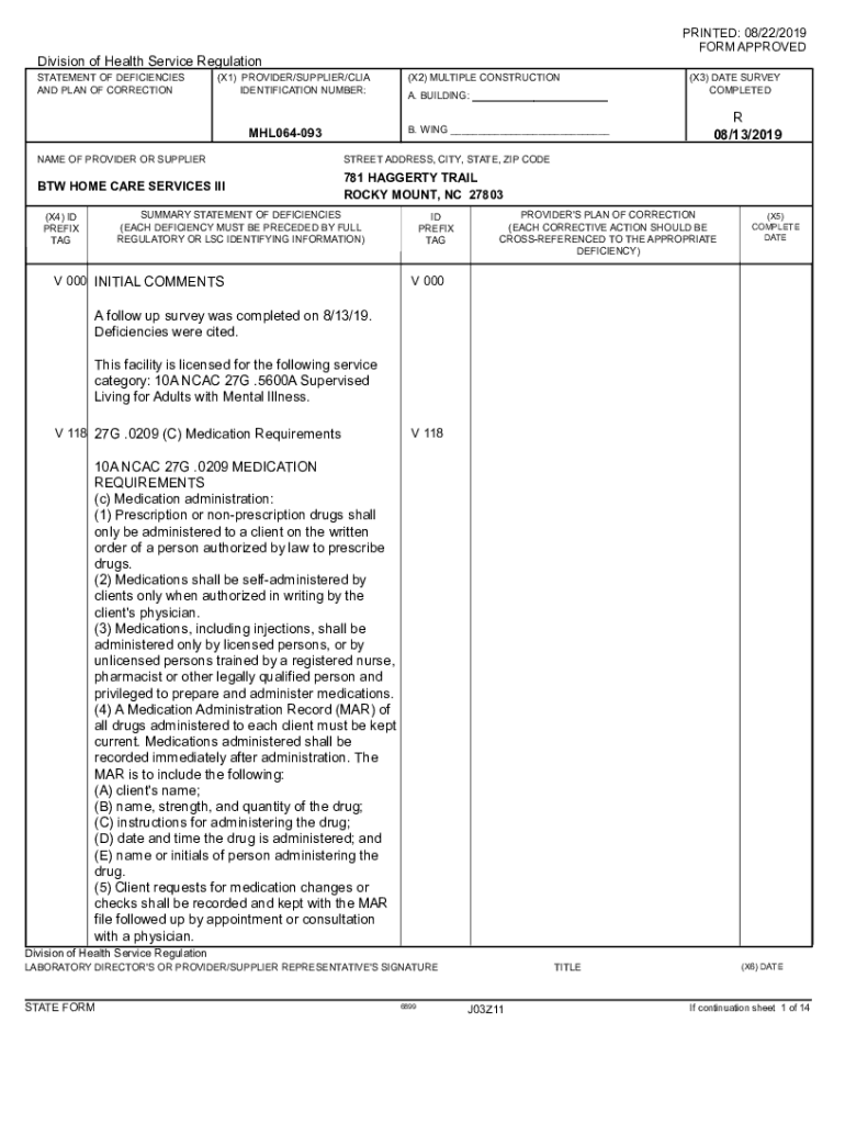 AND PLAN OF CORRECTION(X1) PROVIDER/SUPPLIER/CIA