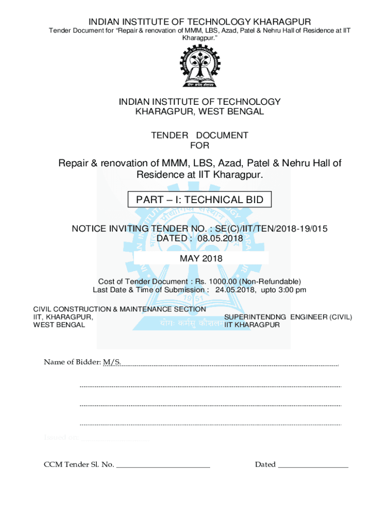 Tender Document for Repair & renovation of MMM, LBS, Azad, Patel & Nehru Hall of Residence at IIT
