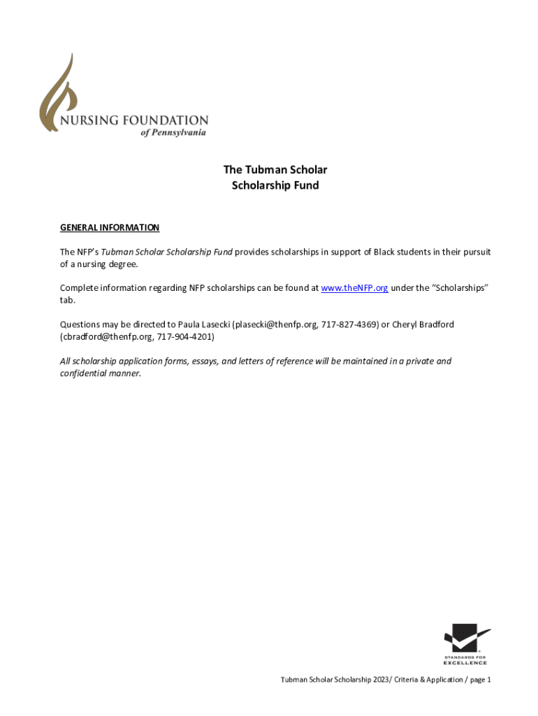 The Tubman Scholar Scholarship Fund GENERAL INFORMATION The NPS Tubman Scholar Scholarship Fund provides scholarships in support of Black students in their pursuit of a nursing degree. Complete information