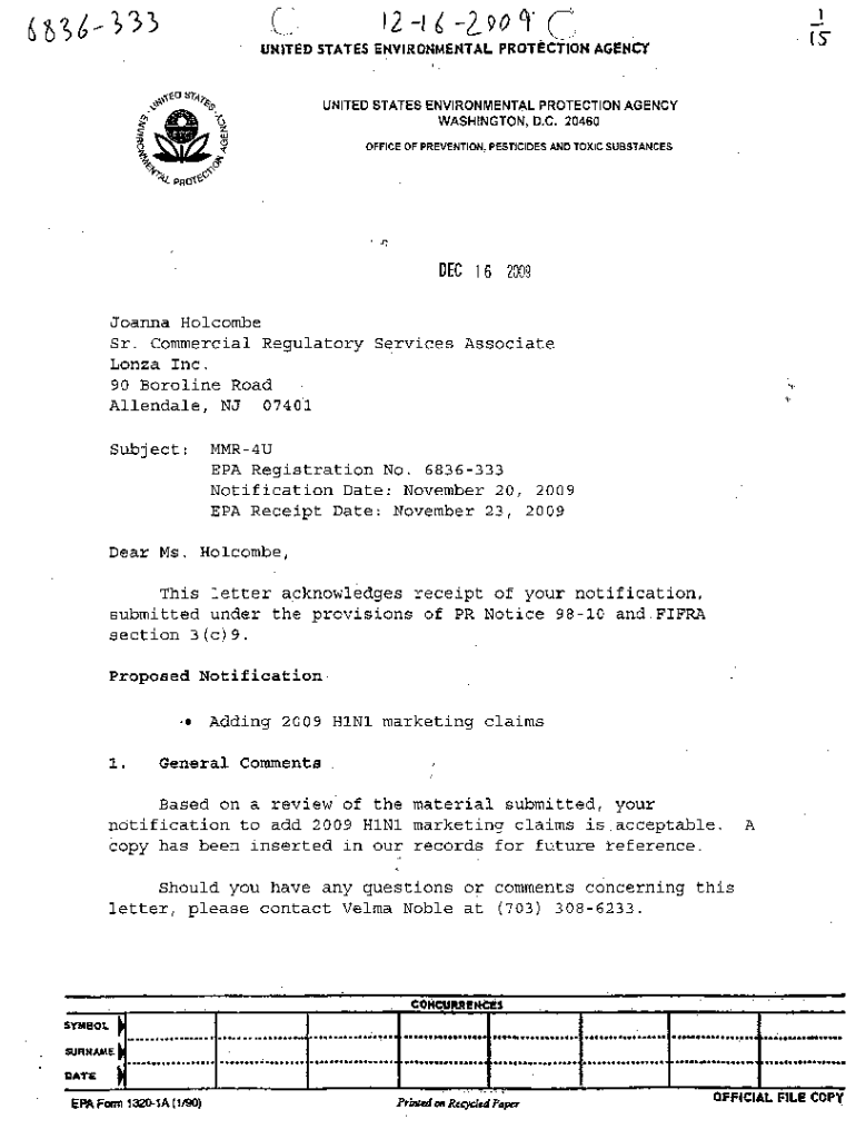 12 I 6 2 90. (;C_\”\', .(5UNITED STATES ENVIRONMENTAL PROTECTION AGENCYUNITED STATES ENVIRONMENTAL PROTECTION AGENCY WASHINGTON, D.C. 20460 OFFICE OF PREVENTION, PESTICIDES AND TOXIC SUBSTANCES