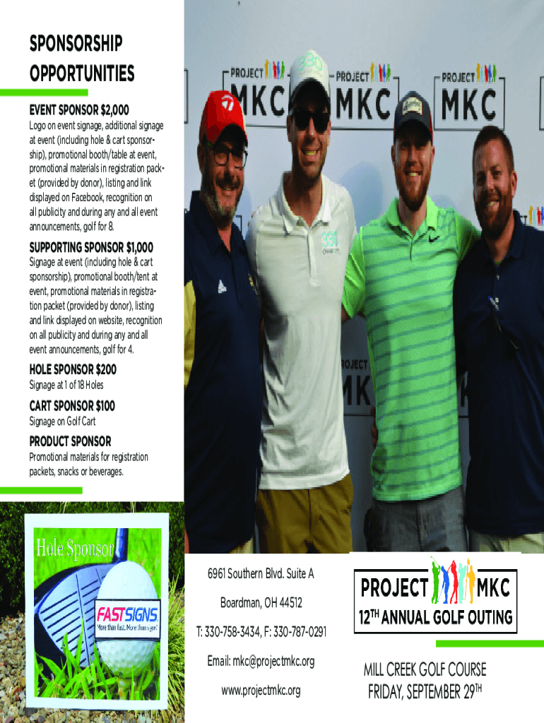SPONSORSHIP OPPORTUNITIES EVENT SPONSOR $2,000 Logo on event signage, additional signage at event (including hole & cart sponsorship), promotional booth/table at event, promotional materials in registration