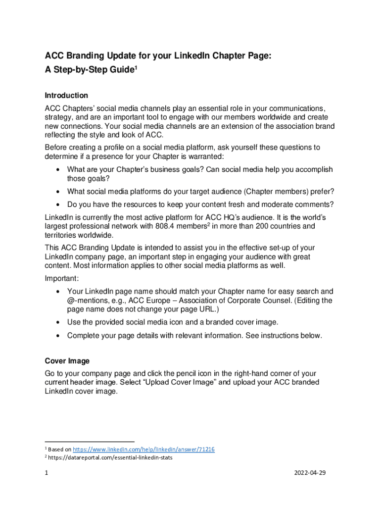 ACC Branding Update for your LinkedIn Chapter Page: A Stepsister Guide1 Introduction ACC Chapters social media channels play an essential role in your communications, strategy, and are an important