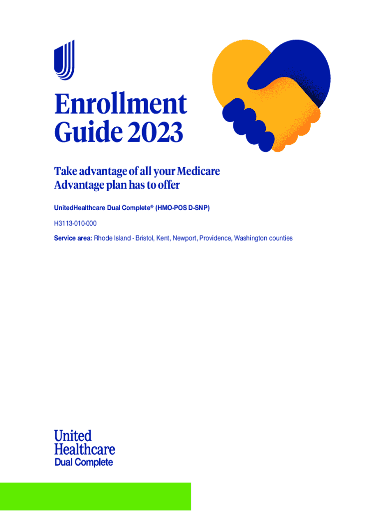 Enrollment Guide 2023 Take advantage of all your Medicare Advantage plan has to offer UnitedHealthcare Dual Complete (HMO POS DSP) H3113010000 Service area: Rhode Island Bristol, Kent, Newport, Providence,