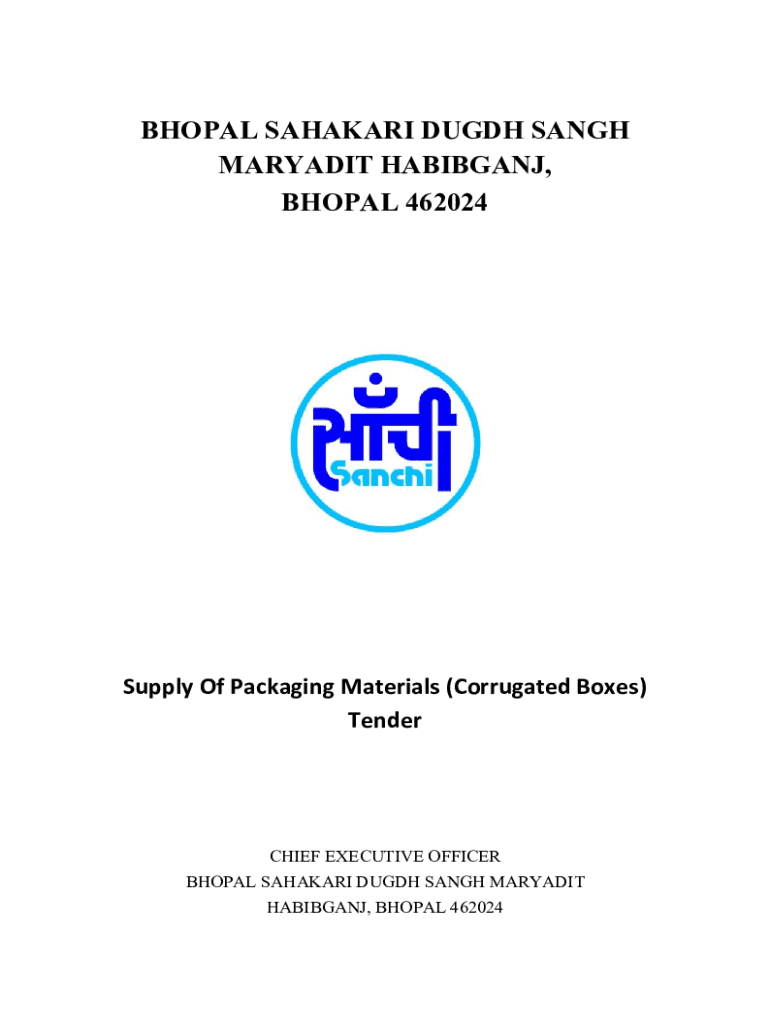 Get the free Bhopal Sahakari Dugdh Sangh Maryadit Tender