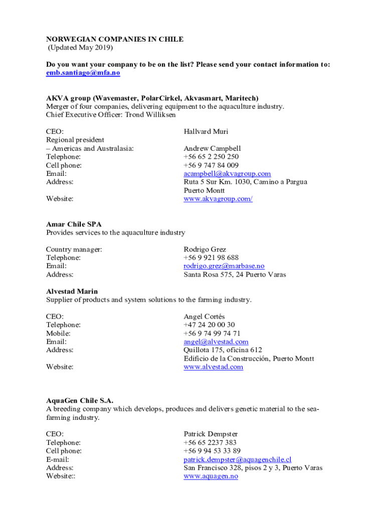 Get the free NORWEGIAN COMPANIES IN CHILE Do you want your company to ...