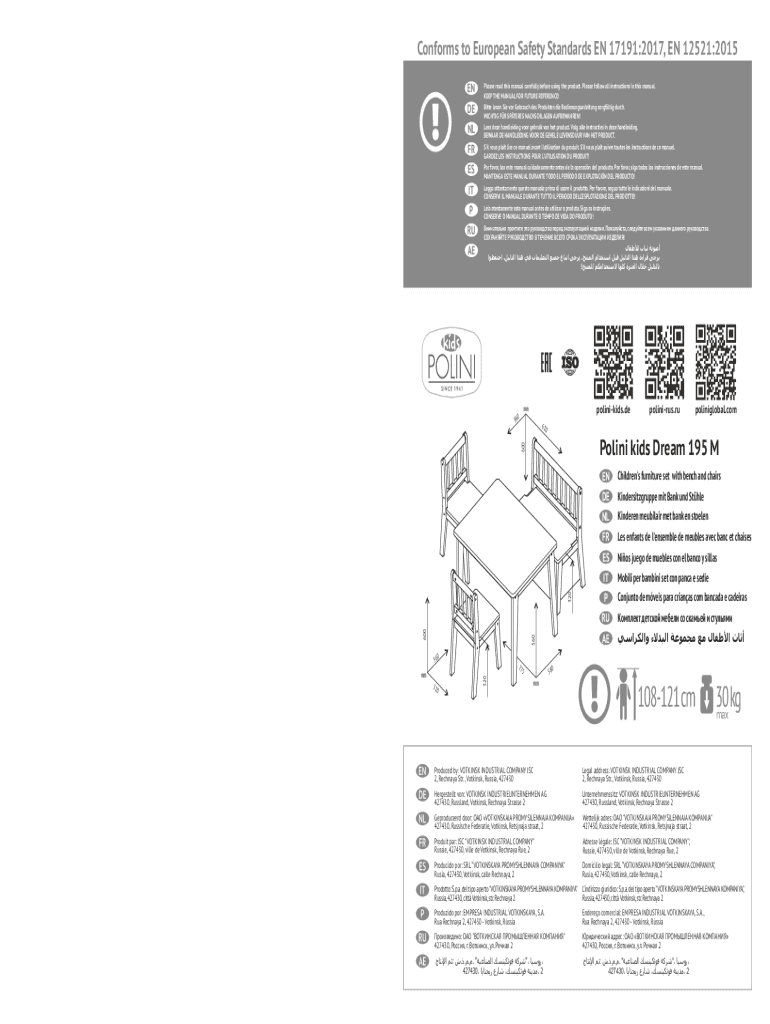 Conforms to European Safety Standards EN 17191:2017, EN 12521:2015
