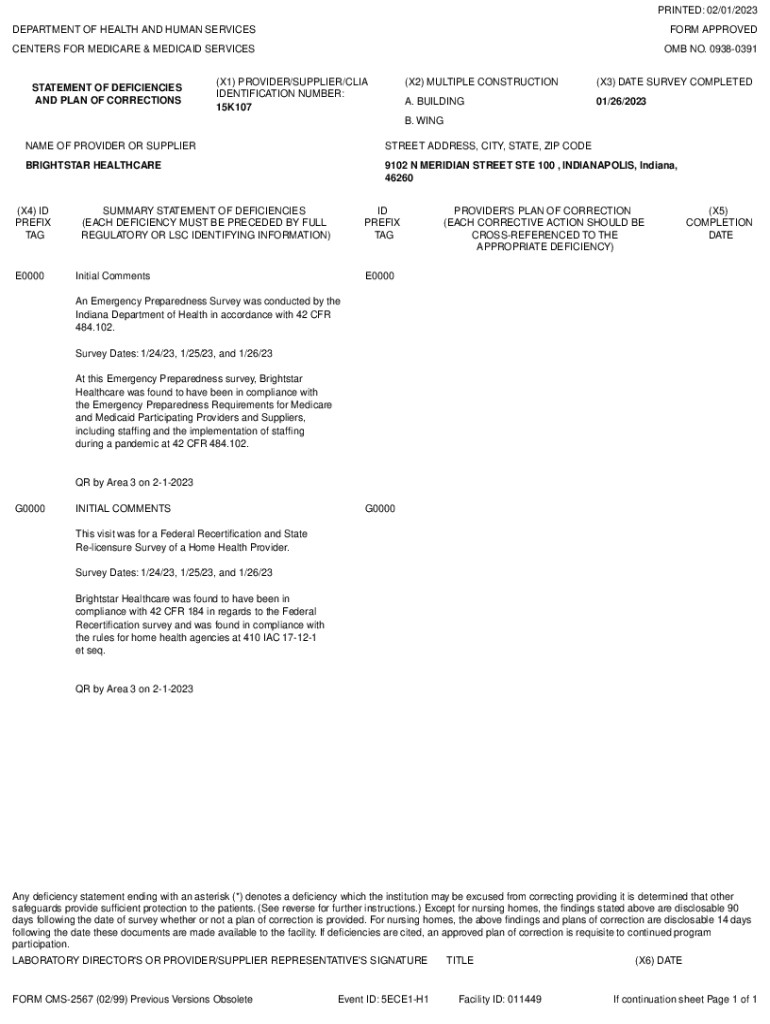 Brightstar Healthcare providers are required to file Brightstar Healthcare.