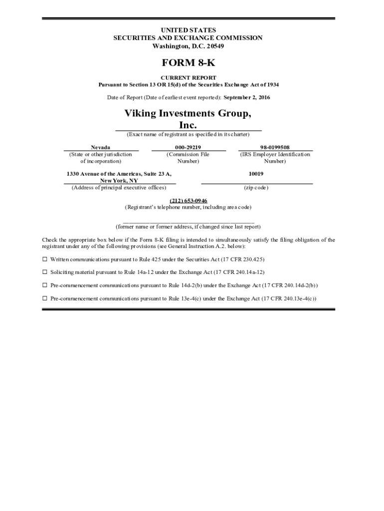 Get the free FORM 8-K Viking Investments Group, Inc.