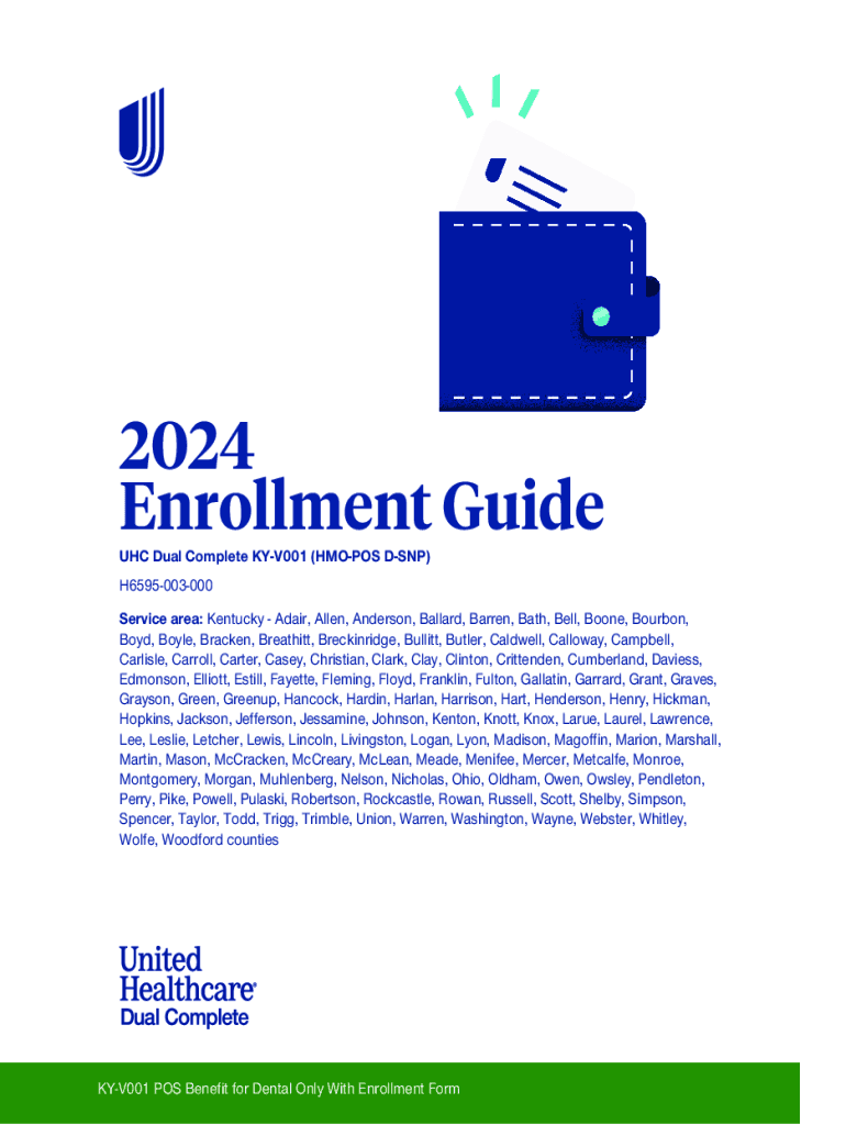 2024 Enrollment Guide UHC Dual Complete KYV001 (HMO POS DSP) H6595003000 Service area: Kentucky Aware, Allen, Anderson, Ballard, Barren, Bath, Bell, Boone, Bourbon, Boyd, Boyle, Bracken, Breathing,