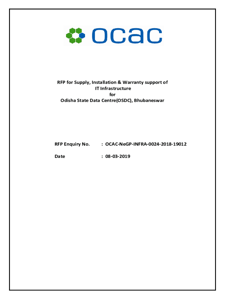 Odisha State Data Center(SDC), Bhubaneswar RFP Inquiry No.: OCACNeGPINFRA0024201819012Date: 08032019IT Infrastructure Procurement