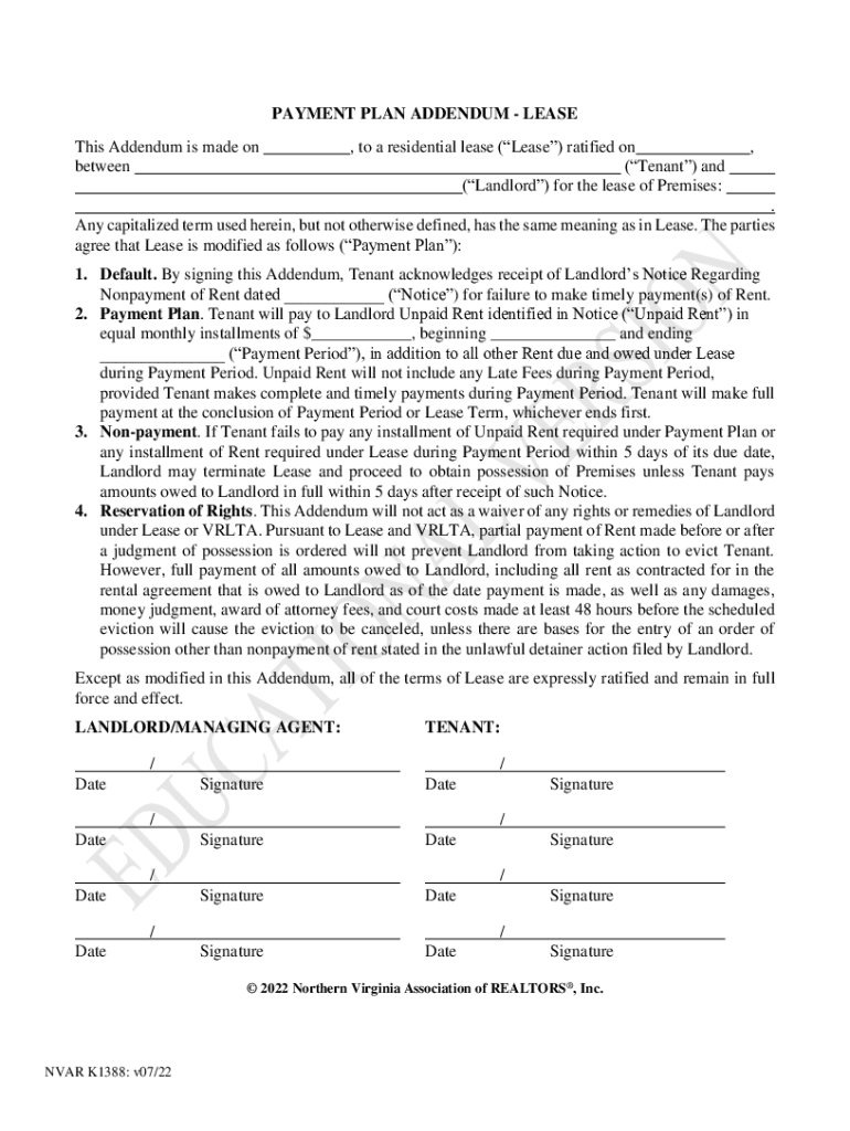 Payment Plan Addendum Lease is not the form you're looking for?Search for another form here.
